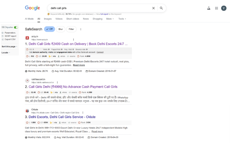 Simply open Google, type in "Delhi Call Girls" arzy.in will appear at the top (because Google also considers this website trustworthy). Now, open the website, press the Call or WhatsApp button, and you'll have the girl of your choice in no time.